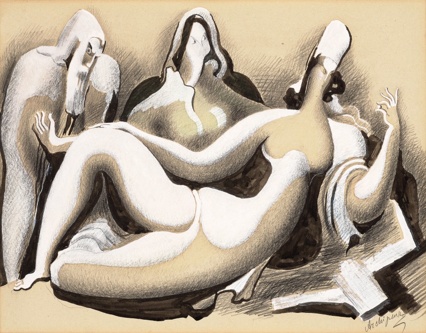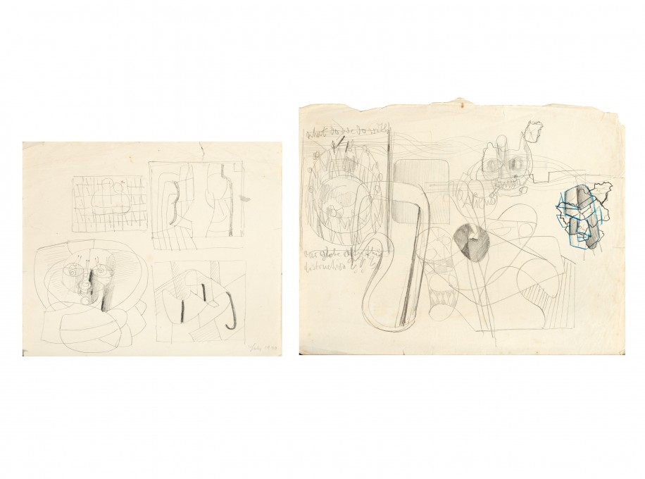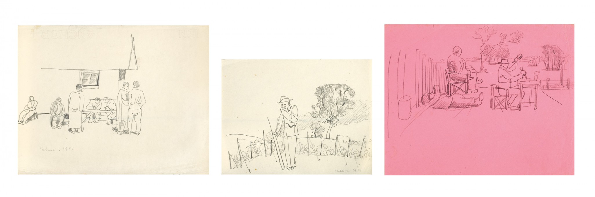 bound sketchbook with 39 sketchespencil, pen, ink and wash on paper
