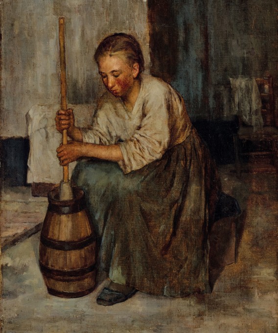 printed cardboard (cut–out and reassembled Norco butter logos) on weathered wood panel
