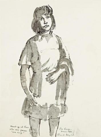 inscribed lower left: Hands up all those/ who are gunna/ 'ave Soup! inscribed lower right: For George- / Xmas 1969/ Russell Drysdale