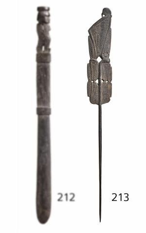 carved hardwood, intricately carved handle, smooth blade, old patina