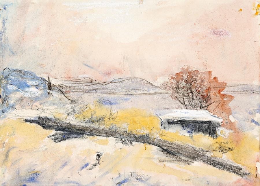 watercolour, charcoal and gouache on paper