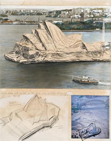 signed and inscribed centre left: WRAPPED OPERA HOUSE (PROJECT FOR THE OPERA HOUSE IN SYDNEY AUSTRALIA) / Christo 1968-6