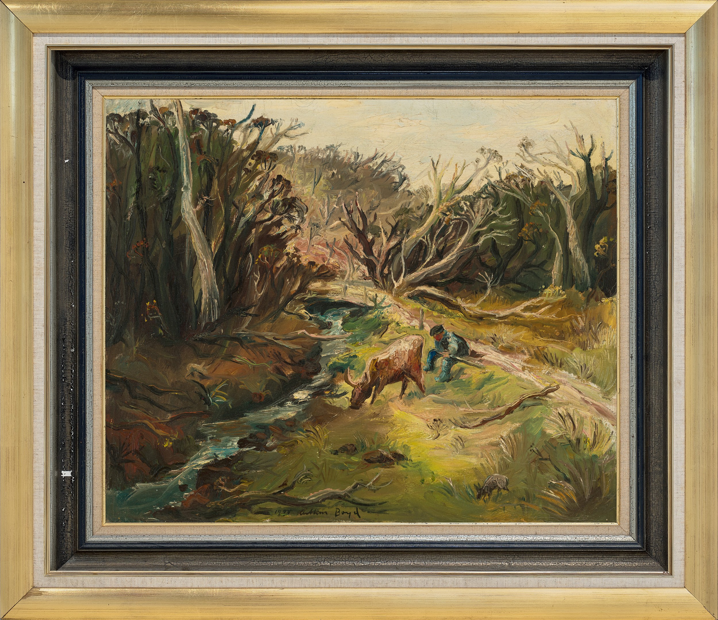 Probably: Philipp, F., Arthur Boyd, Thames and Hudson, London, 1967, cat. 5.2, p. 245 (as ‘Landscape with man and cow’, formerly in the collection of Mr and Mrs P. Ryan, Melbourne)