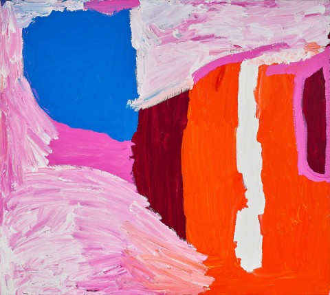 Known for her luminous palettes and intuitively bold brushwork, Gabori layers multiple meanings into her depictions of Dibirdibi. She paints at once the physical landscape of the saltpans, the Dreaming of the Rock Cod Ancestor, a portrait of her late husband bound to his country, and, ultimately, her own profound sense of longing, loss, and remembrance.