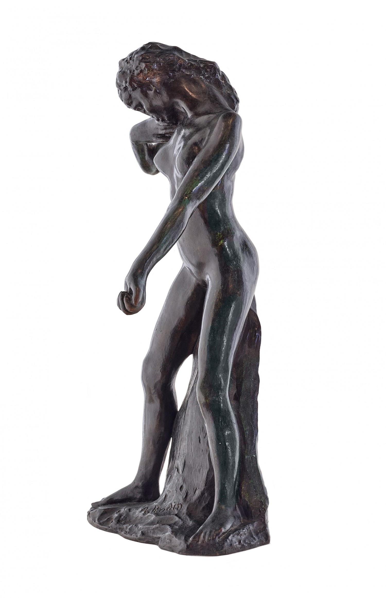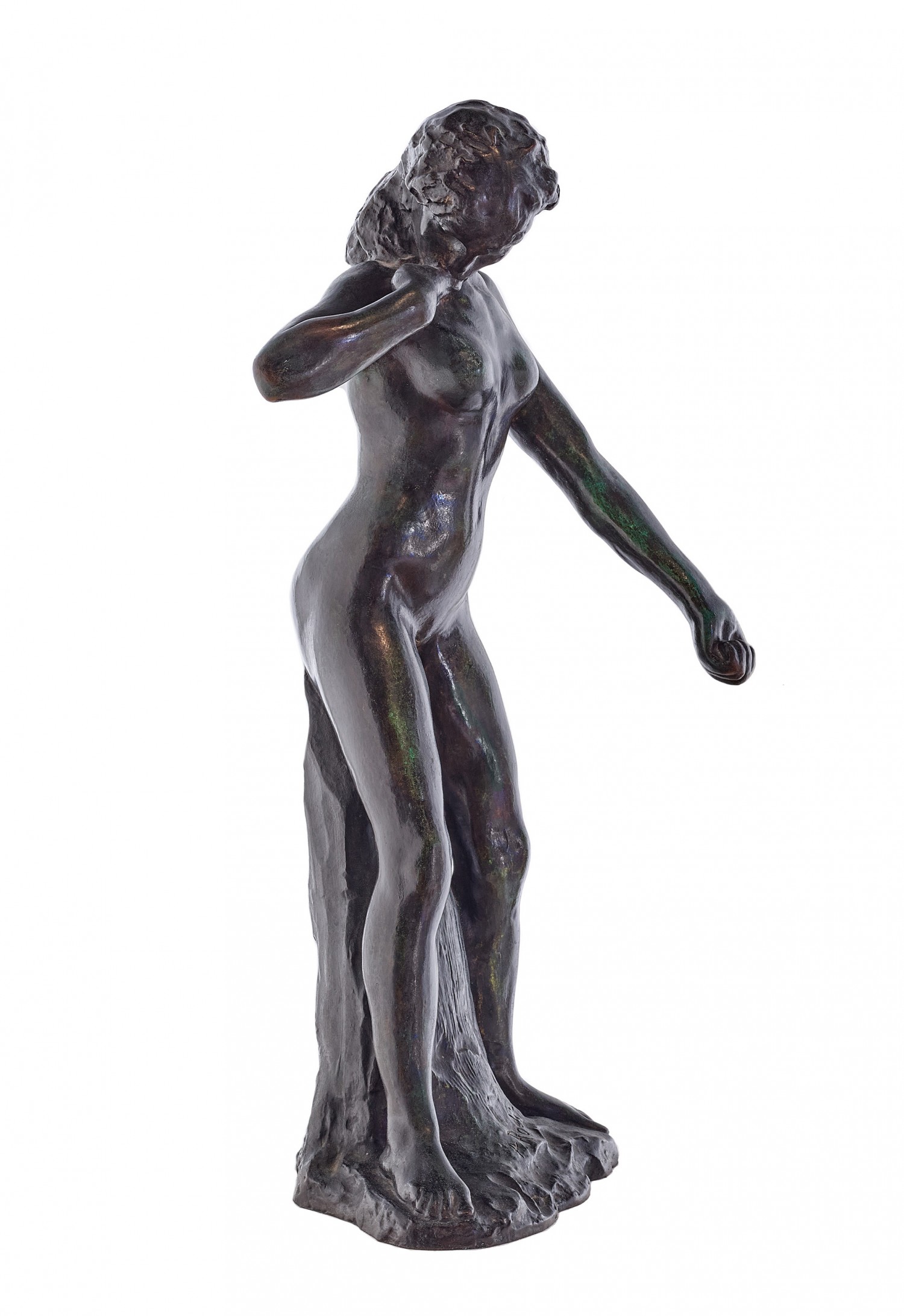 The plaster life-size maquette of the gate remained within Rodin’s studio throughout the remainder of his career, becoming a cumulative receptacle for all his ideas and fantasies, and in turn feeding his oeuvre. By the mid-1880s, it became the source of his most famous, standalone works – including The thinker, 1904 and The kiss, 1882 and a myriad of smaller individual figurines, including the present La faunesse debout, 1884 which Rodin began to isolate and exhibit independently.