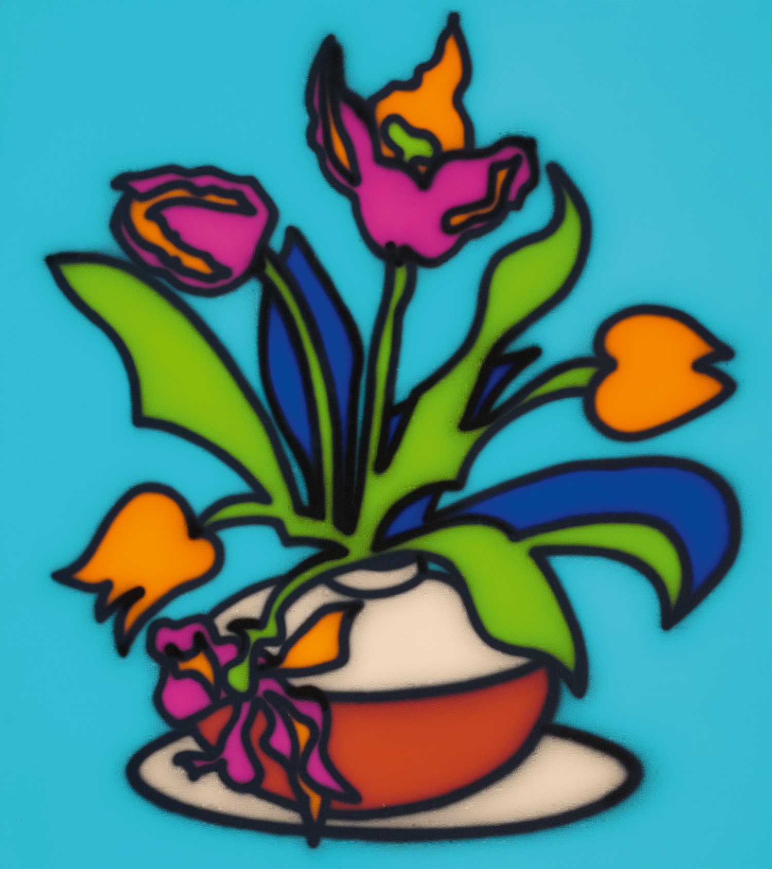 Still life Tulips, c.1997, synthetic polymer paint on canvas, 130.0 x 125.0 cm, collection unknown