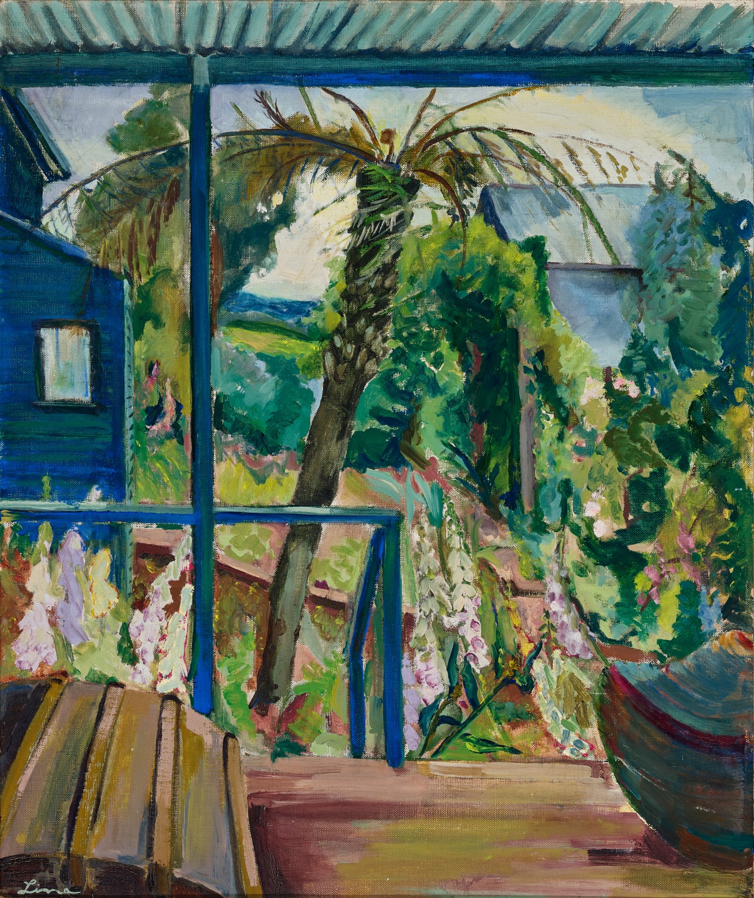 signed and inscribed with title verso: 'From the studio Harkaway' / Lina Bryans