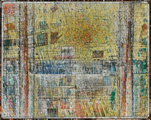 One of the artist’s recorded aphorisms was: ‘reality is made of cadences, rhythms, materials – all that science ignores. The world is a beautiful mathematical unity which is unfolding in accord with its exact nature.’5 In Summer (2), Miller places as much emphasis on radiance as he does on structure. Its subject – the sun hovering over a low mountain range bracketed by trees – dissolves before the viewer’s eyes into tiny tiles of fragmented colour before re-assembling into the complete image, only to dissemble again, a continuous rhythm of entropic interplay that rewards each subsequent examination.