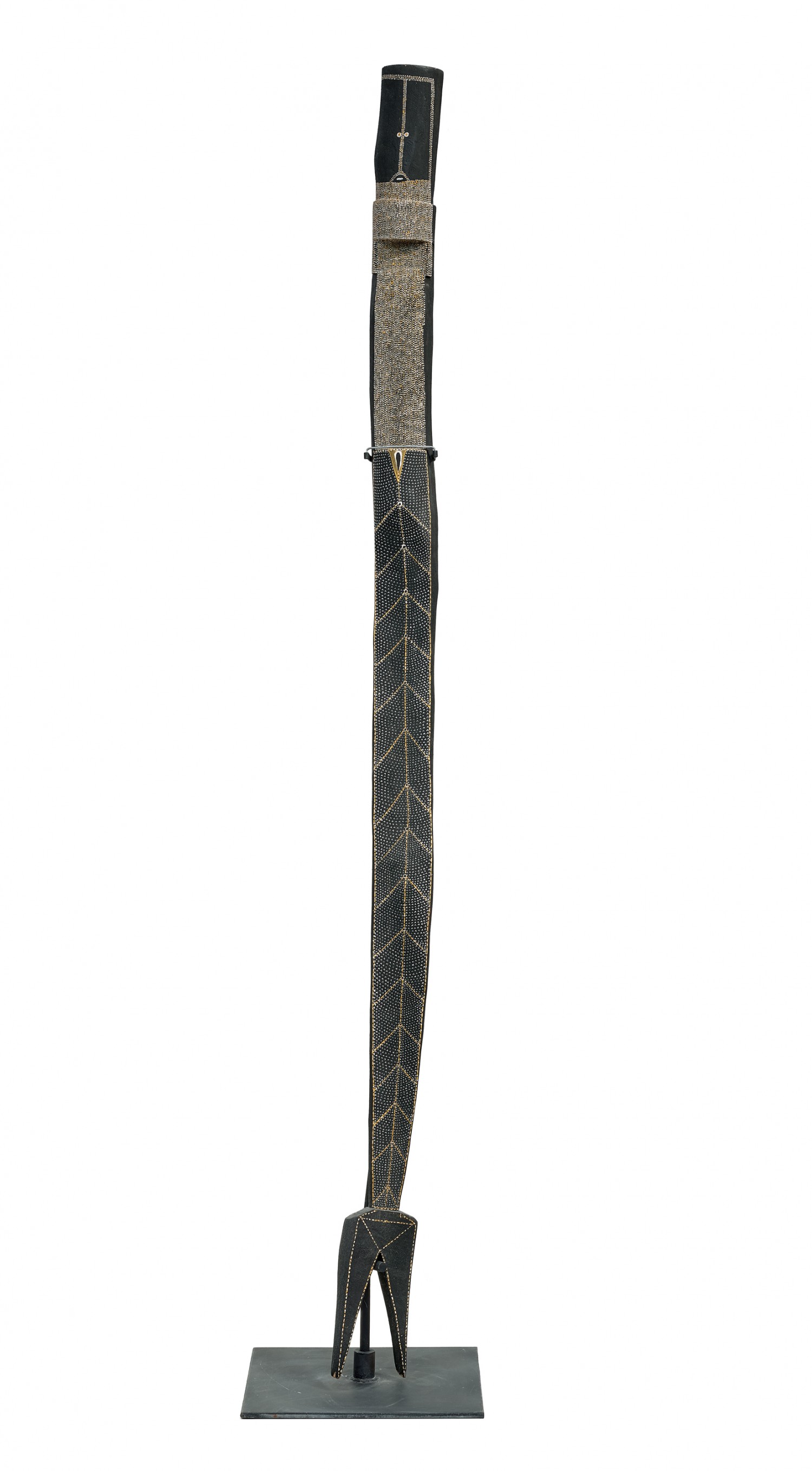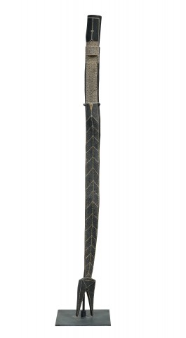 Yawkyawk, 2007, natural earth pigment and PVA fixative on kurrajong wood, 212.0 x 16.0 x 40.0 cm, private collection, illus. in Clark, D., and Jenkins, S., (eds), Culture Warriors, National Indigenous Art Triennial 07, National Gallery of Australia, Canberra, 2007, p. 182