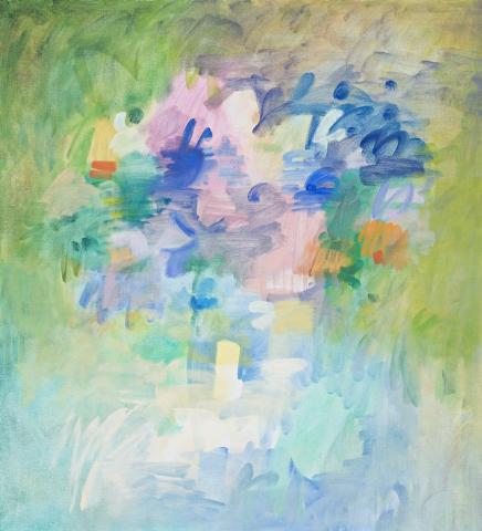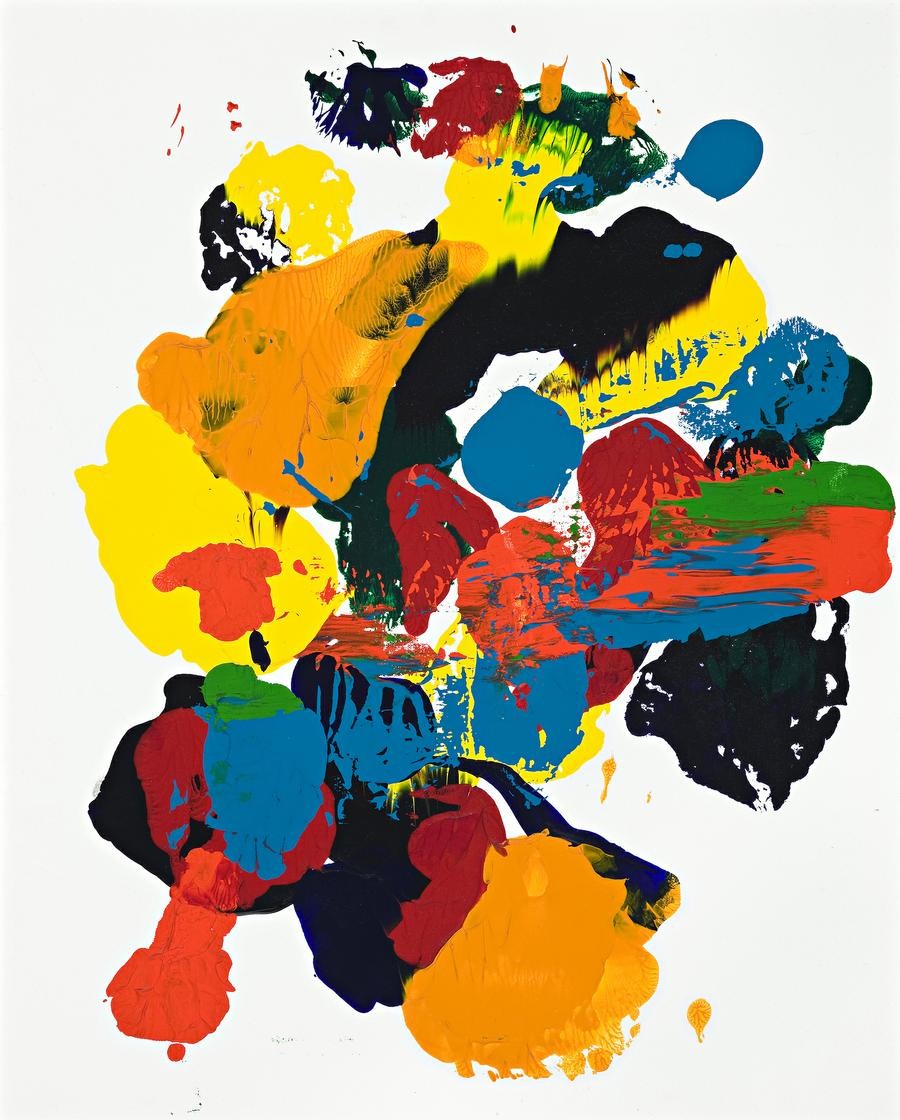 signed, dated and inscribed lower right: The big sun / & / lilly pond / John / Olsen / 86