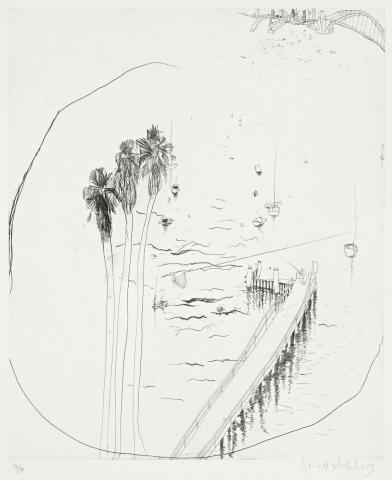 signed and stamped with studio stamp lower right: brett whiteley 79 B/W inscribed lower left: the split second summer began Oct/22/79