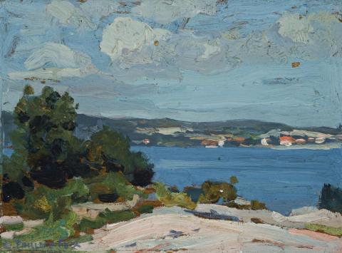 inscribed verso on stretcher:"The Beacon of the Pilot" II