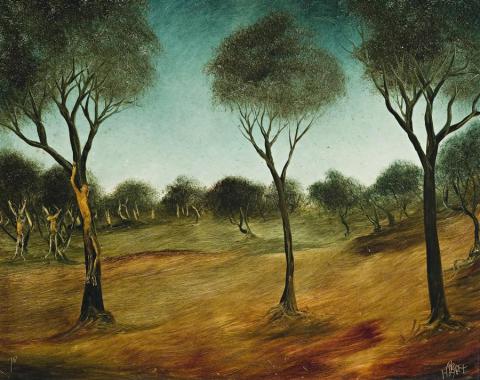 signed and dated lower right: GlEESOn / 52 inscribed verso on frame: "TRISTAN" 1400 gns /James Gleeson / 10 Tarakan Cres., / Northbridge